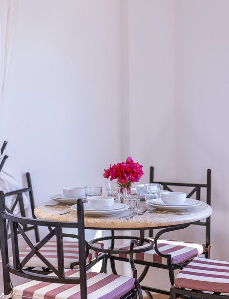 Around the pool are sun loungers with parasols and a poolside shower for guests’ use.