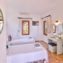 The double bedroom has an en-suite shower and within the room a wardrobe, dressing table with stool and views through the windows of Kalamar Bay.