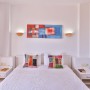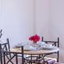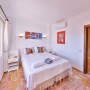 Down the corridor is the first bedroom - a twin with a wardrobe and dressing table and stool. Across from the bedroom are glass doors leading to the balcony with a dining table with 6 chairs and two comfy chairs with a parasol.
