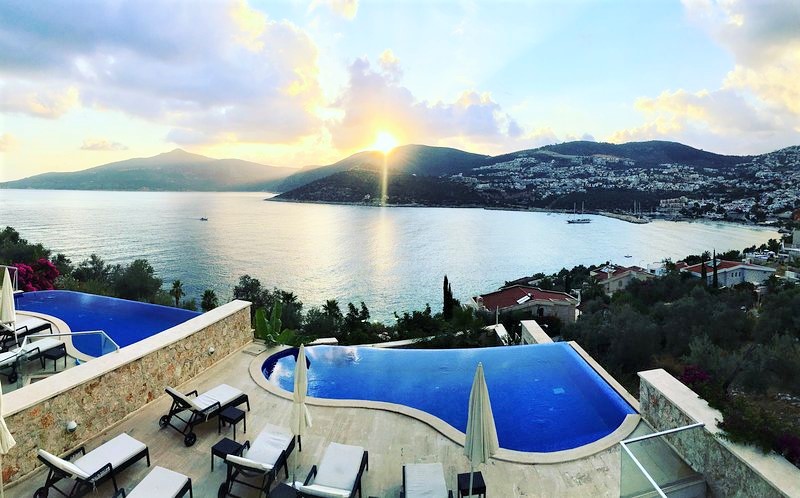 The walk to Kalkan’s the harbour area (with its array of quality restaurants) will take approximately 10 -12 minutes. Alternatively, you can access the harbour via water taxi from nearby Zest, Denizim or Palm beach clubs. These beach clubs offer direct access to the sea via a spacious sundecks (Zest also has a large pool too). Sun loungers and parasols are available for hire and the beach clubs also have an excellent restaurant facilities.