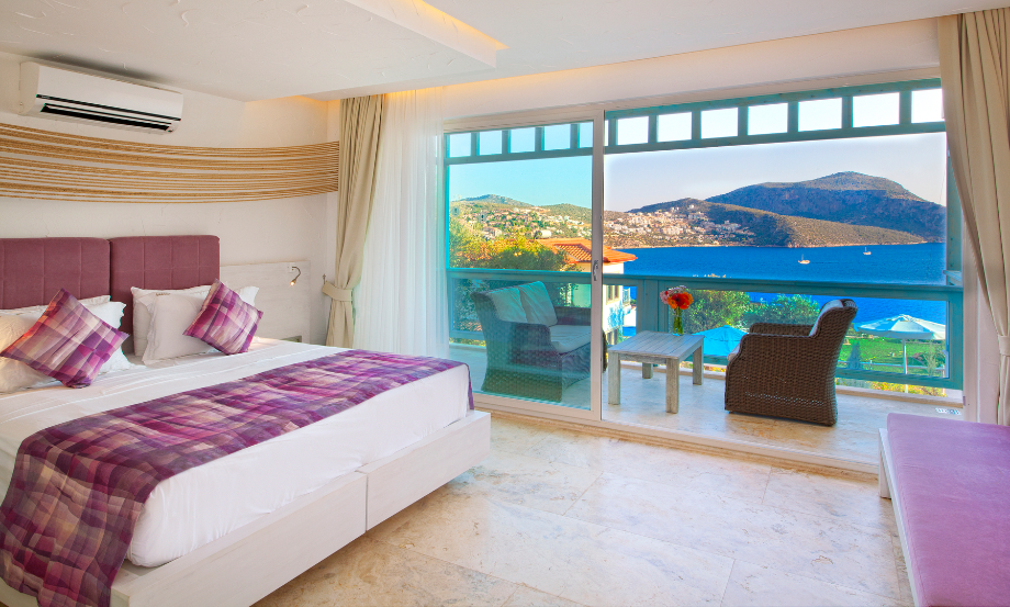 The suites offer stunning views out over Kalkan Bay, together with wonderfully spacious accommodation. Each suite has a private balcony with table and comfy chairs and a stylish en-suite shower room – the perfect place to watch the sun go down over the Mediterranean Sea.