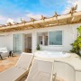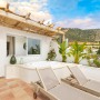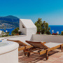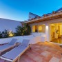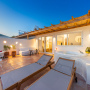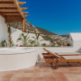 Sliding triple glazed doors lead to the private roof terrace with round Jacuzzi bath, 2 sun loungers with a parasol and dining table with 2 chairs.