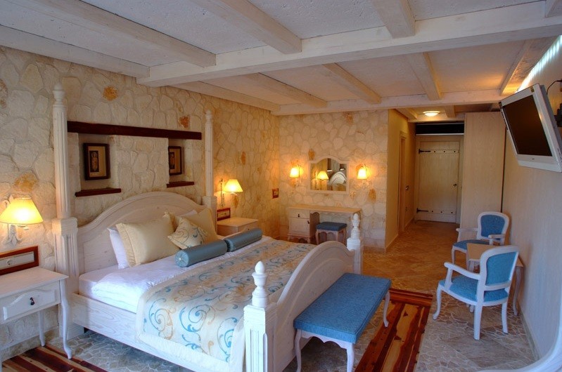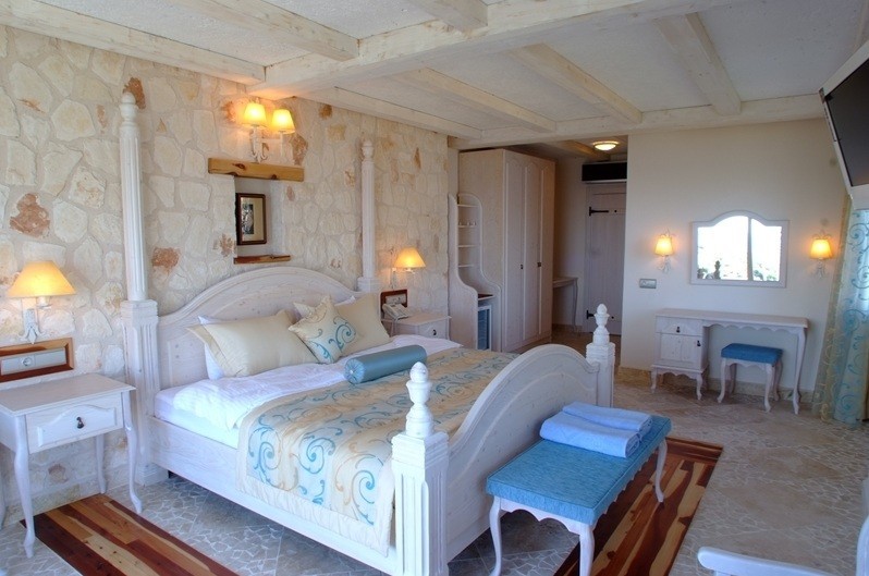 Every suite at the Likya has its own balcony or terrace with lush planted borders and internally, the décor is both relaxing and inviting. Beautiful creamy-white stone wall panels compliment the white lime-washed furnishings.