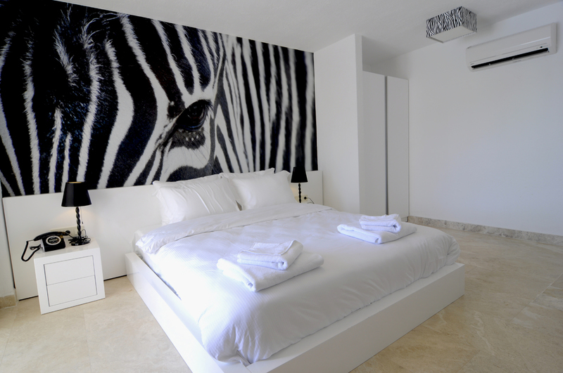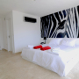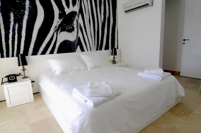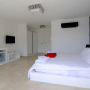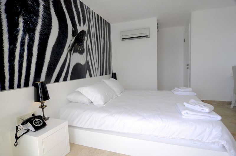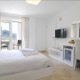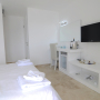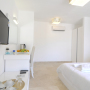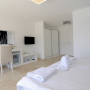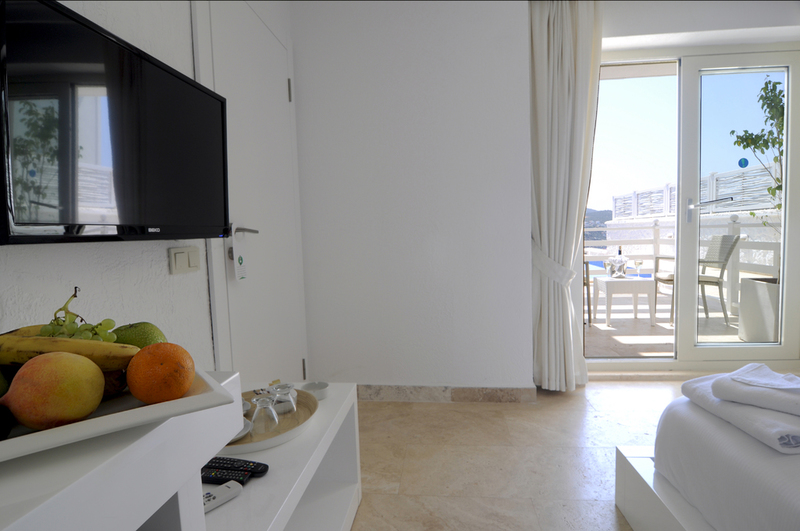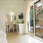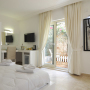 A spacious double room with ensuite shower, at pool level. There is a private terrace with table and chairs, from which guests have direct access to the poolside terrace and main pool. This room has a limited sea view.