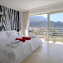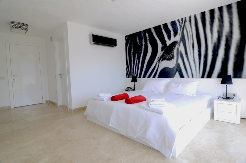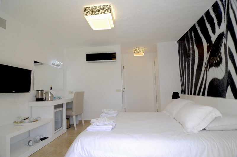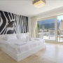 A spacious double room with ensuite shower, which is located at pool level with full sea views. This room benefits from a private terrace with loungers as well as table and chairs. There is direct access to the poolside terrace and main pool.
