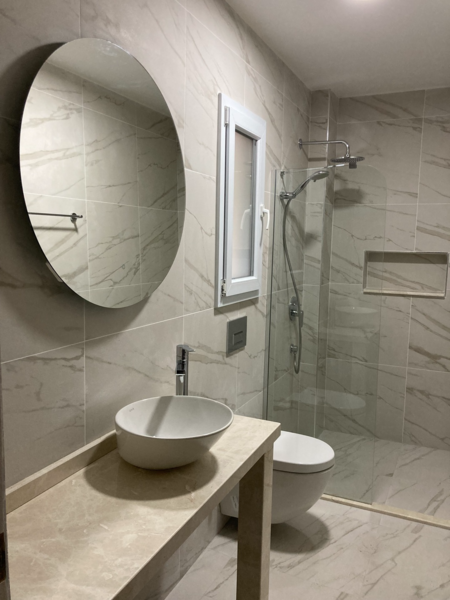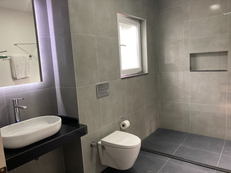 The laundry area is on this level with, a washing machine, sink, clothes drier, iron and ironing board and an additional fridge to keep your food and drinks cold when sitting on the roof terrace.