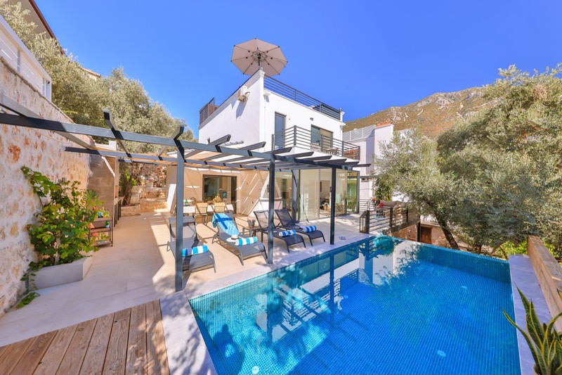 The house is located on the exclusive Likya Estate which includes access to a huge communal pool and staffed club house surrounded by lush gardens open exclusively to estate guests (usually, a daily fee is payable for use of the communal pool, but for the 2024 season, the owners will bear the cost of this). And whilst it's secluded and tranquil, the villa is also very close to all the amenities that Kalkan has to offer being just a 500 metre stroll to the marina and a selection of beach clubs.