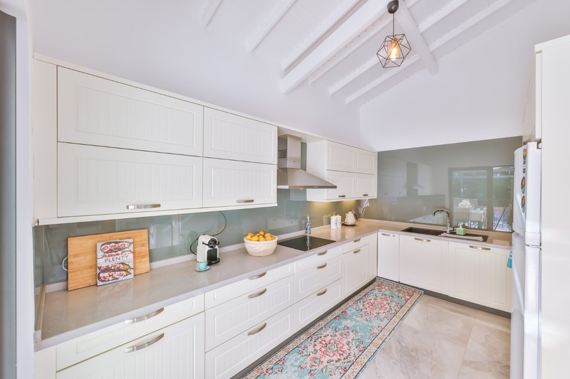 The entrance of the villa leads to an open plan living space that is light and airy. There is a cloakroom provided just behind the front door and 3 steps lead down to the living, dining and kitchen areas.