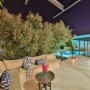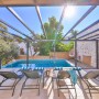 On the ground floor level is a pool with integral steps set within decking with a swing chair. There are 6 sun loungers and a table to seat 8 for al-fresco dining, together with a further built in BBQ.