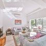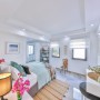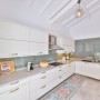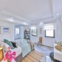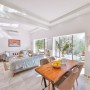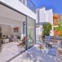A well appointed chef’s kitchen flows seamlessly into the sun filled contemporary living room with areas for eating, spending time with friends or relaxing with a book.