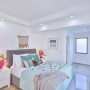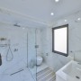 The first double bedroom has a dressing table and built-in wardrobes with a glass door to access the shared balcony. This bedroom shares the large family bathroom on this level, which has a bath-tub with integral shower.