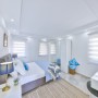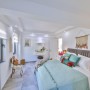 The master bedroom has a large double bed with sliding doors to the shared balcony that has 2 comfy wicker chairs and a coffee table from which to enjoy the sea views. There is is also a dressing