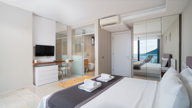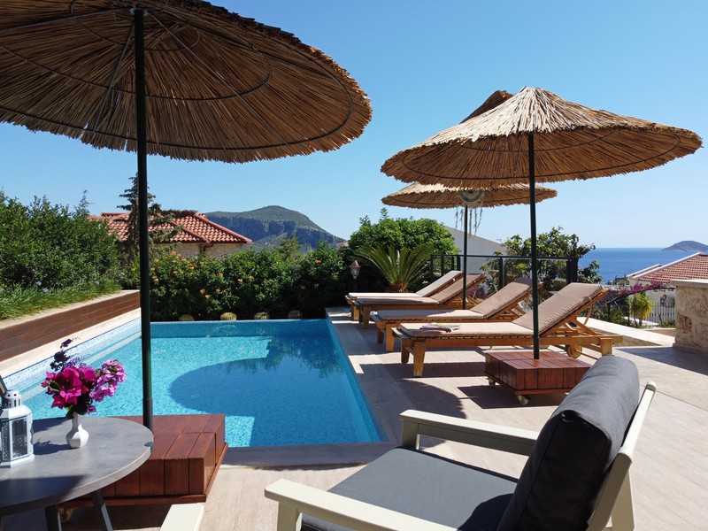 This four-bedroom semi-detached villa has been newly renovated and offers a tranquil space to enjoy views of Kalkan Bay and the islands.