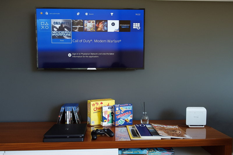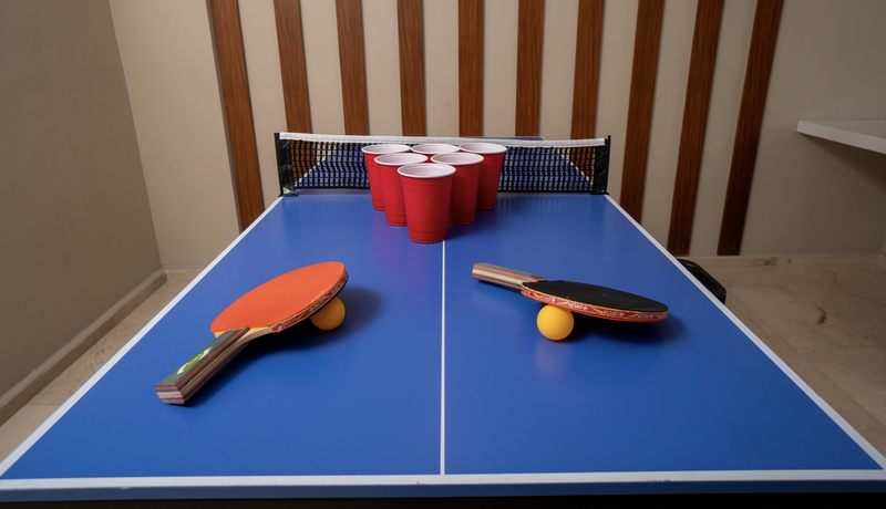 A ping pong table is also available on this level as well as a washing machine housed in utility cupboards that also have an iron and ironing board for guests’ use.