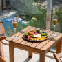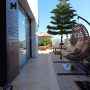There is a double swing seat and dining table with 8 chairs with a gas BBQ to enjoy al fresco dining.
