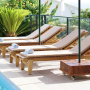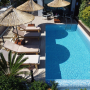 The infinity pool is accessed by a ladder and sun-loungers are spaced around the terrace, together with 2 parasols.
