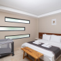 The bedroom at the rear of the villa is a double with en-suite shower room. Within the room is a wardrobe and sliding doors lead to a Juliette balcony.