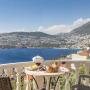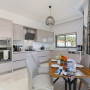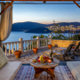Off the dining area with a table with 6 chairs, is a covered semi-circular balcony with an external dining table with 8 chairs to enjoy al fresco dining with incredible views of the bay.