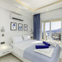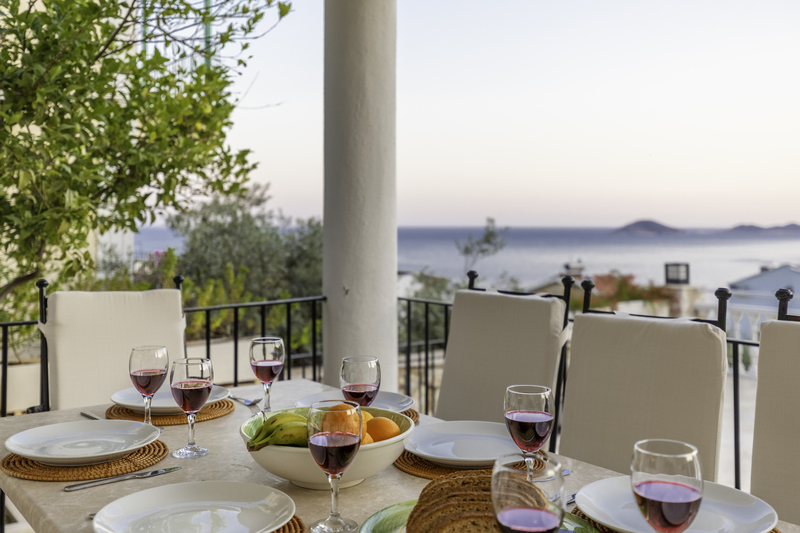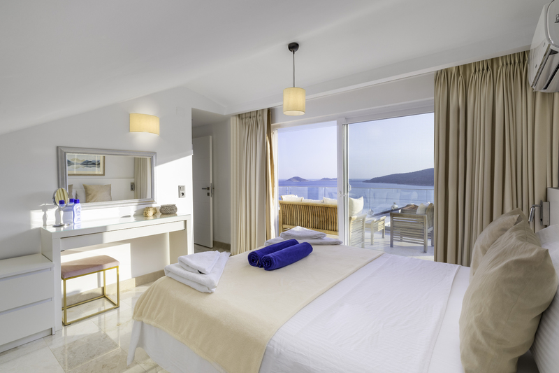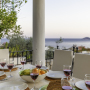 This modern property offers guests plenty of space in which to relax and take in the panoramic views of Kalamar Bay and the islands.