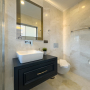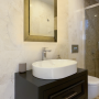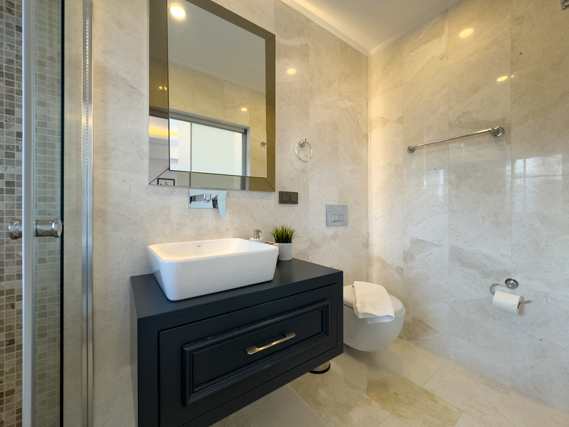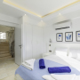 The third bedroom is at the rear of the villa and is configured as a double that can be made into a twin on request. Within the room is a wardrobe and dressing table with stool as well as an en-suite shower room. The window looks over the mature gardens below.