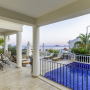 Glass doors lead out to the veranda and pool terrace with sea views.