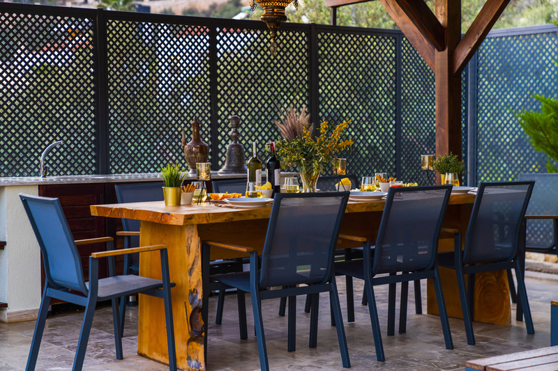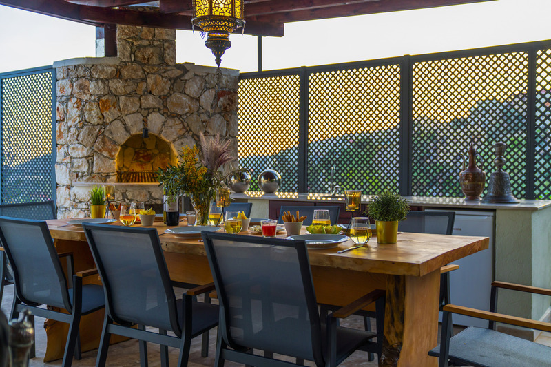 Several different areas are available to enjoy as a large group, as well as individually. There is an Ottoman seating area, covered dining terrace, and 10 sun-loungers are positioned in different areas around the pool terrace. All outdoor flooring has non-slip marble for safety.