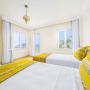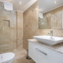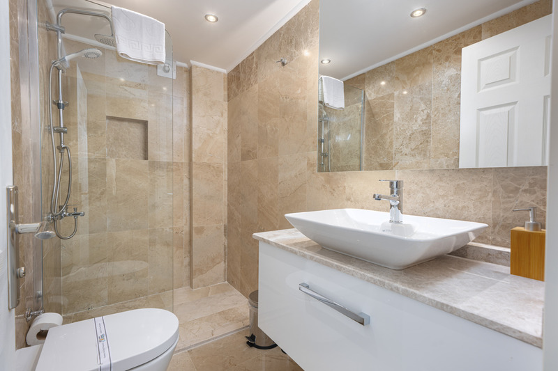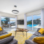 The open plan living area comprises a spacious beautifully furnished lounge and dining room leading through to a fully fitted and equipped luxury kitchen with an island breakfast bar. There is also further direct access to an additional tranquil shaded seating area to enjoy views across the bay. The al-fresco dining area is conveniently accessed from the kitchen area.