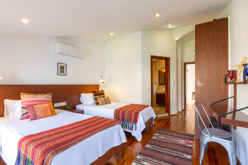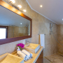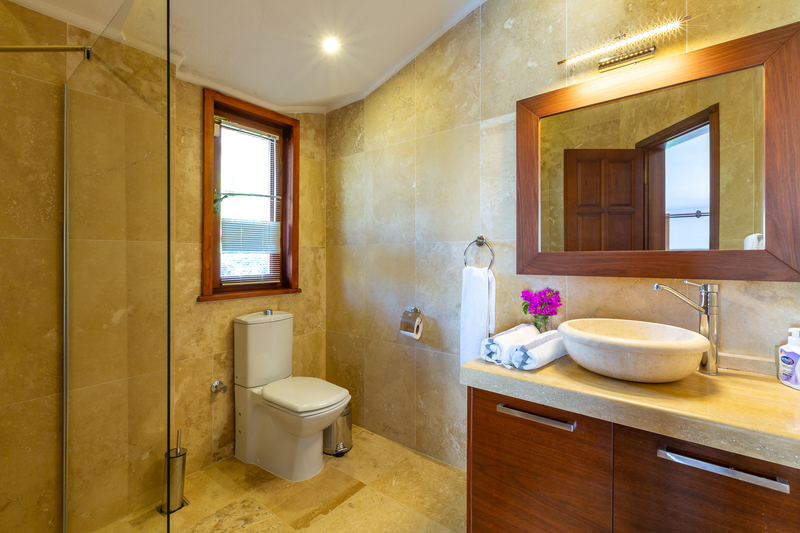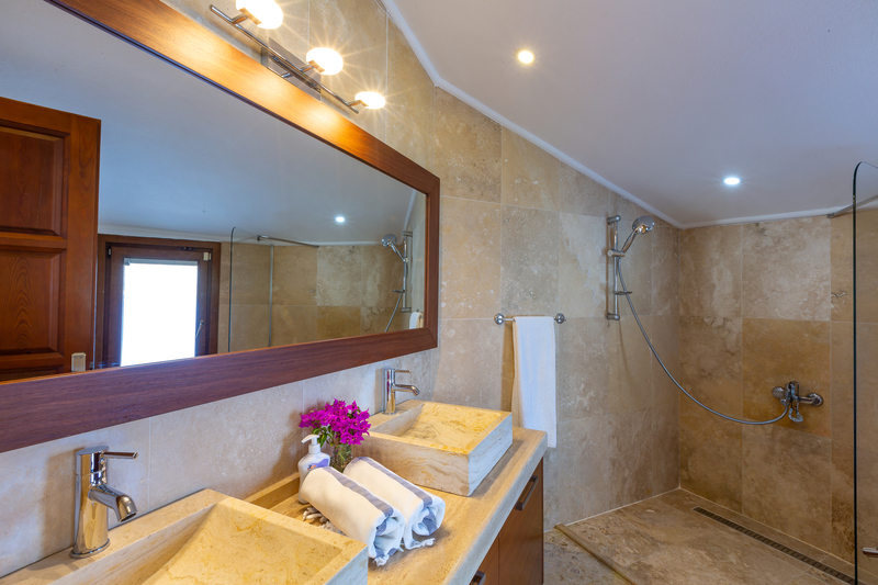 This floor houses the villa’s three bedrooms; two doubles and a twin. Each has an en-suite bathroom with shower/WC and each has a private balcony / terrace with stunning views across the bay.