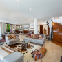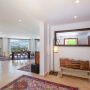 The villa's entrance opens out onto a reception lobby area leading directly into a spacious open-plan living area with comfortable seating, TV/DVD player and a separate dining area with seating for up to eight guests.