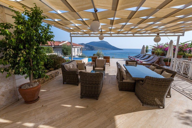 We are very happy to add Villa Dalkiran to our portfolio of luxury villas. In a prime position close to the Likya Residence Hotel, the villa provides extremely comfortable accommodation together with stunning sea and harbour views. The centre of Kalkan town is less than ten minutes’ walk away. The villa itself is very stylishly furnished both inside and out.