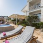 There are ample sunloungers and parasols plus a shaded dining area to seat 8.