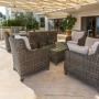 The pool terrace is furnished with two sets of comfortable furniture from which to enjoy the beautiful vistas.