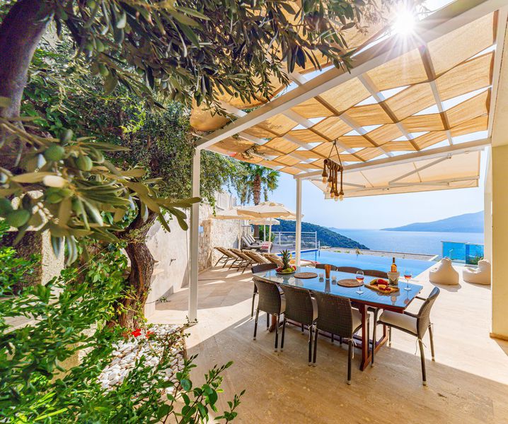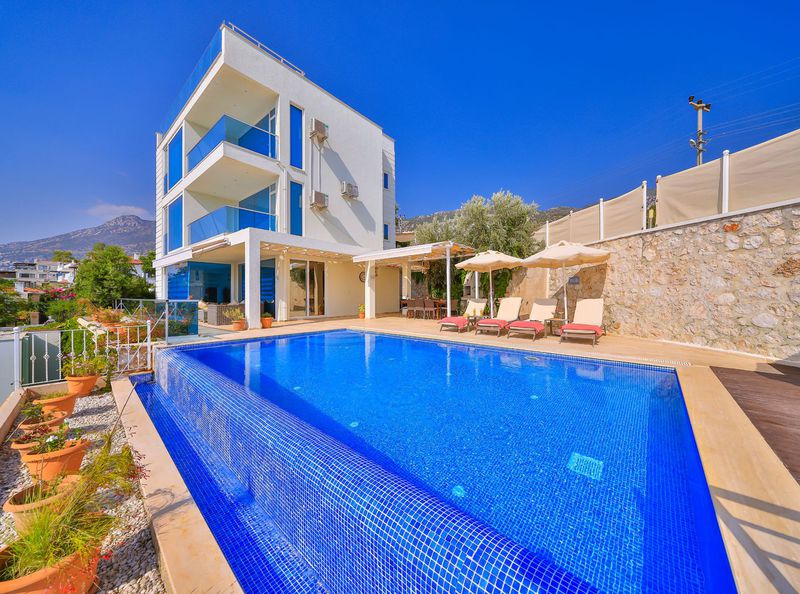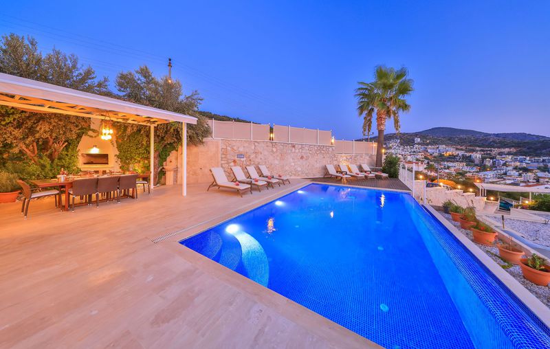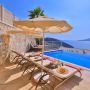 Only a 15-20 minute walk from the heart of the old harbour of Kalkan and a 5 minute walk to the renowned Mahal Beach Club, this recently constructed villa has been completed to the highest standard with contemporary furnishings. It has been beautifully designed with heat reflecting glass windows and doors throughout that maximise the stunning sea vistas from every angle. The villa features modern, open plan living with marble and limestone tiling throughout, patio area with infinity-edged pool and an outside barbeque. The roof terrace also has 360 degree views of the surrounding mountains, Kalkan town, harbour and sea.