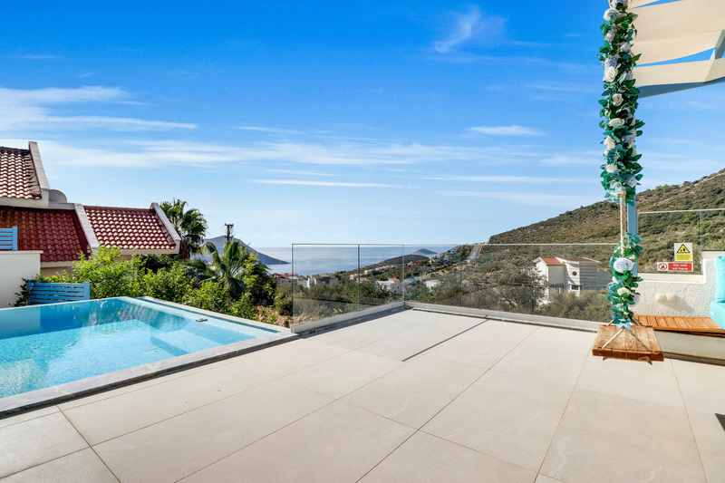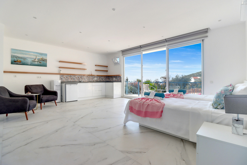 This spacious property is only a 15-20 minute walk to the centre of Kalkan and has spectacular views of Kalkan Bay to the Islands as well as the backdrop of the Taurus mountains behind.