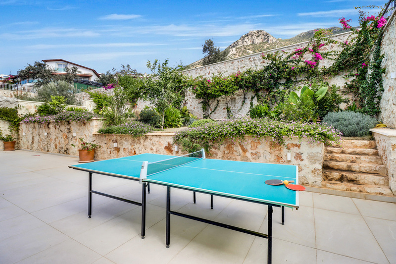 To the rear of the villa is an elevated garden with flower beds and table tennis is provided for those guests who feel energetic.