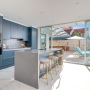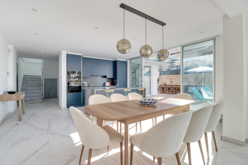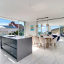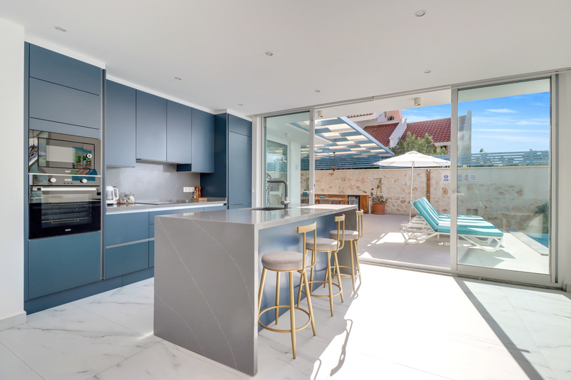 Sliding doors from the kitchen and living area provide access to the pool terrace.