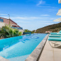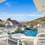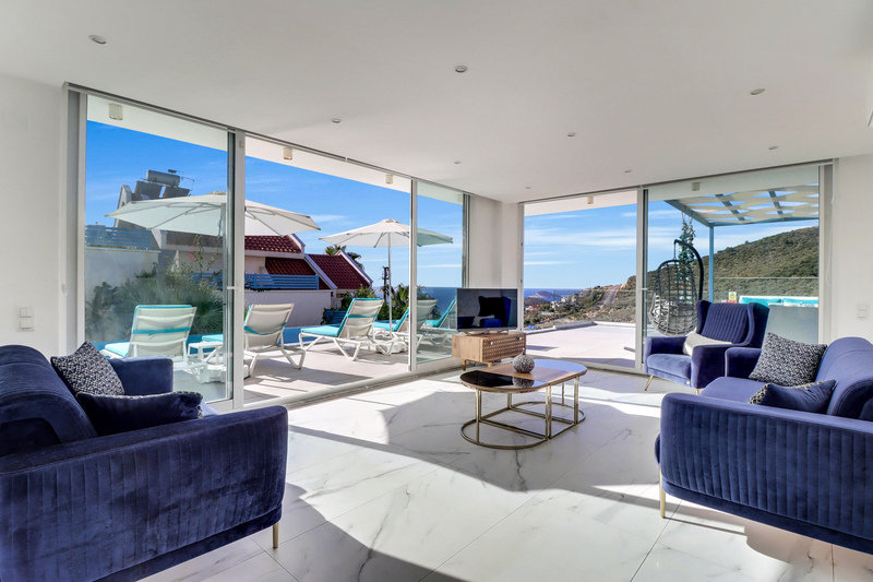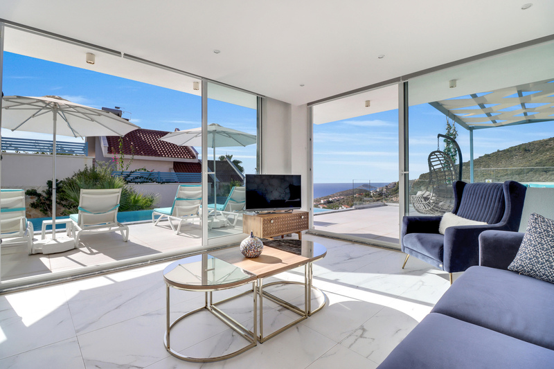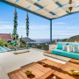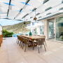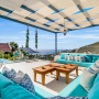 At the other end of the villa and set beneath a shady pergola, a large L-shaped sofa with cushions and a coffee table can be found offering wonderful sea and mountain views.