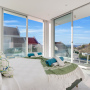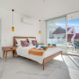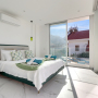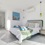 The Master bedroom on this floor has a large en-suite shower room with a Jacuzzi bathtub and twin basins. There are also built in wardrobes and a dressing table with stool. Sliding doors provide access to the private balcony with a further two chairs and a coffee table.