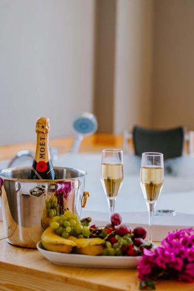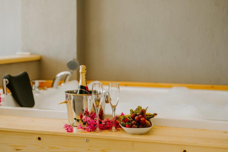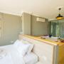 Then the first floor houses two bedrooms - both are doubles with alcove windows leading to a balcony with 2 chairs and a small table that can either be used inside or out. One of these bedrooms has a free-standing Jacuzzi and each bedroom has an en-suite shower room.