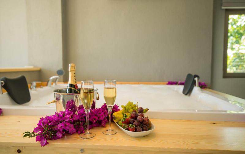 In addition, a dining table and 8 chairs are provided, as well as an outdoor shower which has been cleverly created from an olive tree on the terrace.