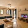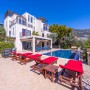 The villa has a good-sized pool and the surrounding terrace has 8 sun loungers and 4 parasols. There is also a beautiful grassed area to one side of the villa and a mature garden. This area has a comfortable seating area.