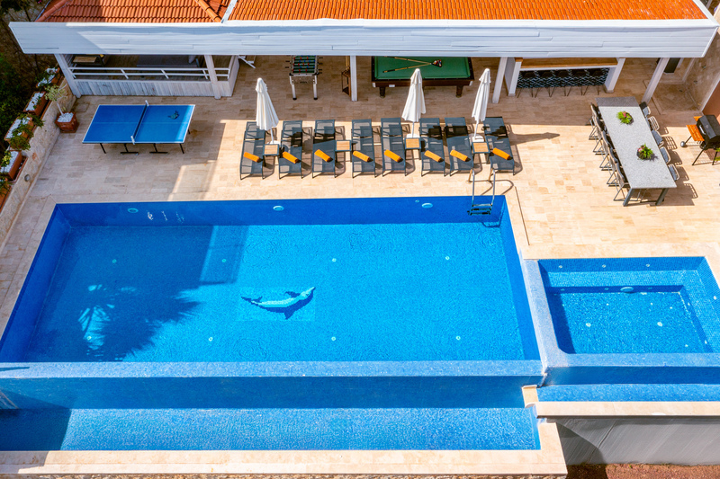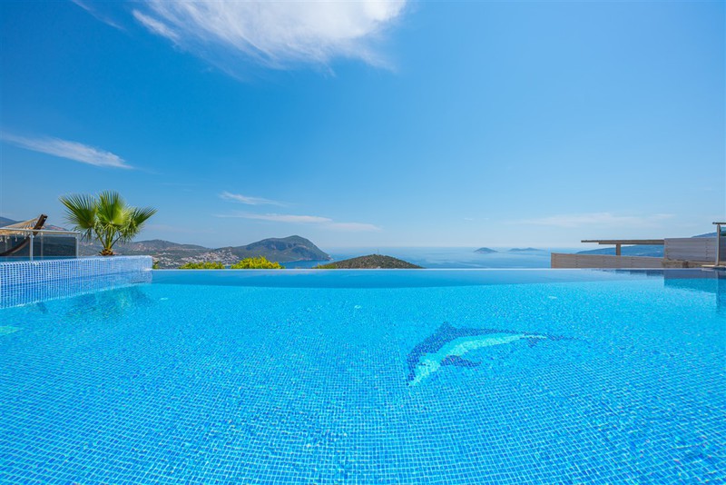 Equally impressive outdoors, Villa Kayra has a large Jacuzzi by the impressive infinity pool and a pergola shades a poolside bar and traditional Turkish seating area (kösk). Whilst shops are within walking distance, the villa is just a five minute drive from Kalkan’s beach, roof-top restaurants and harbour.