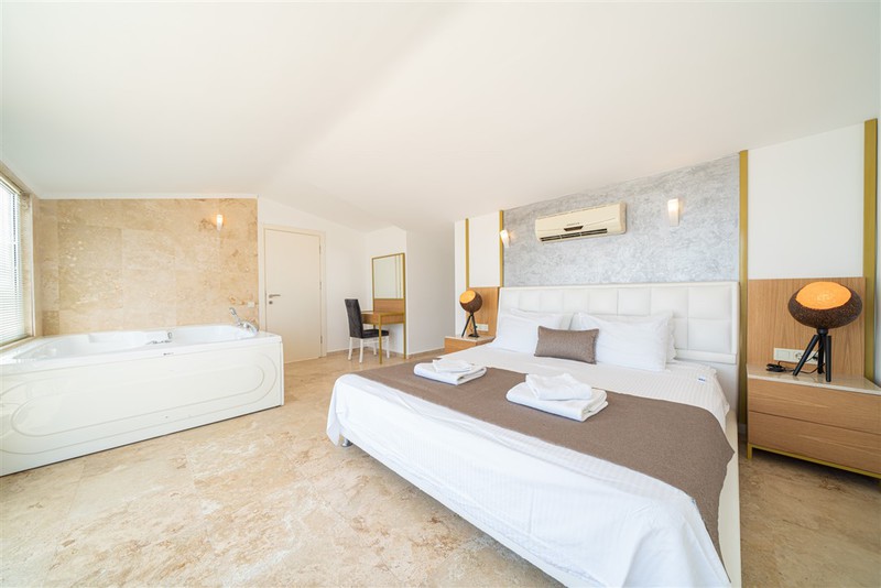 The master suite on the top floor is complete with TV and an in-room double Jacuzzi bath.