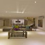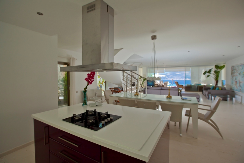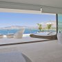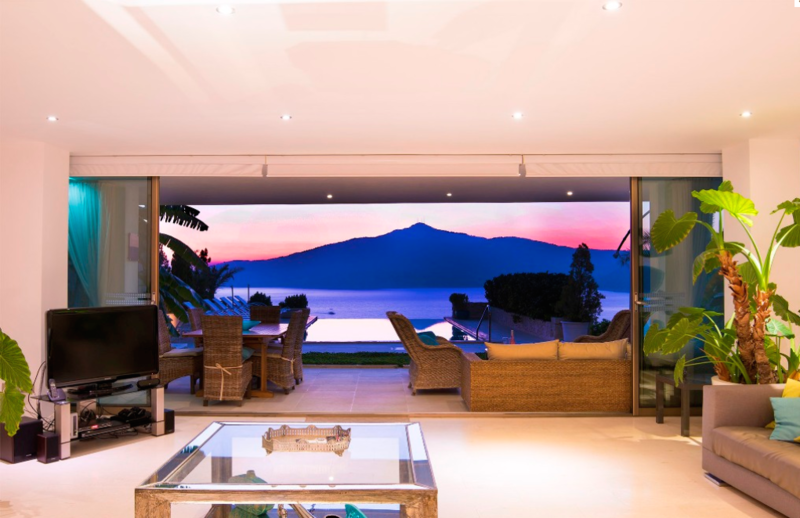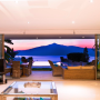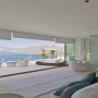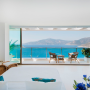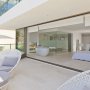 The living area features floor to ceiling windows which make the most of the stunning bay views and these open onto a shaded terrace area, which is an ideal spot for al fresco dining.