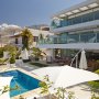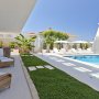 As mentioned, the living area opens out onto a spacious pool terrace that’s furnished with chic white sun loungers and parasols. The infinity-edged pool is approximately 4 metres x 9.5 metres (1.55 metres deep).