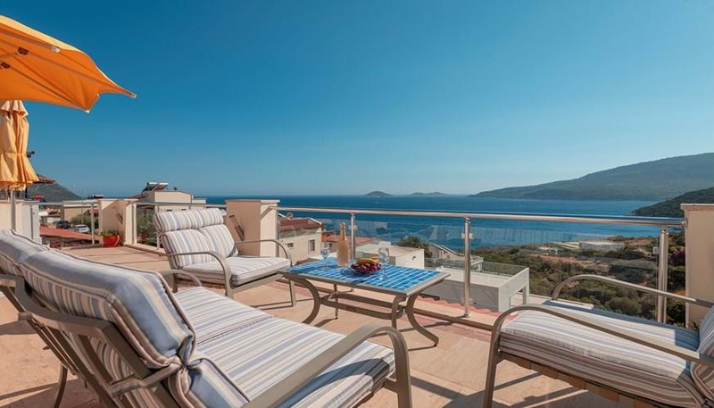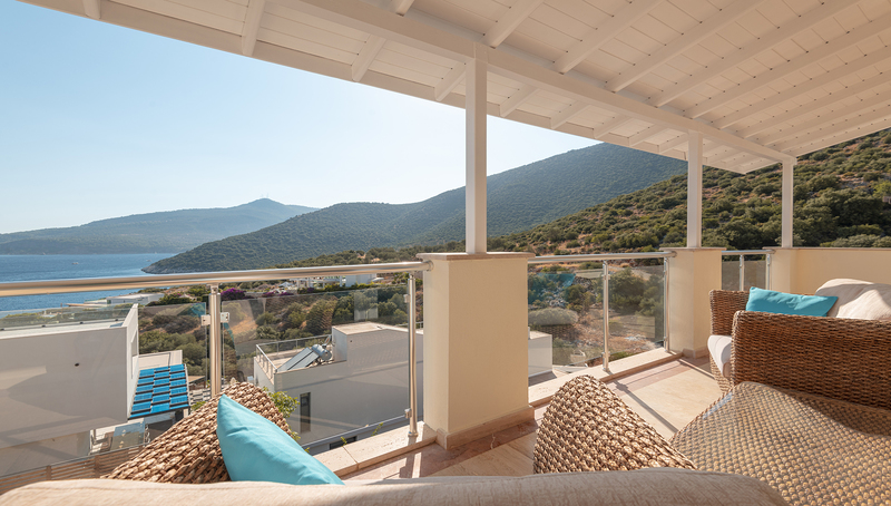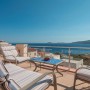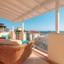 Through a glass door, the roof terrace is furnished with two sun loungers plus a parasol and beneath a pergola is a comfortable seating area in which to relax and enjoy the panoramic views out towards Mouse and Snake islands.