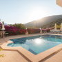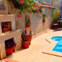 The freshwater pool has steps at one end and a ladder at the other to access the water. There are seven sun loungers spaced around the pool with three parasols. There is a round table with a parasol and 2 wrought iron metal chairs from which to enjoy the wonderful bougainvillea by the pool.