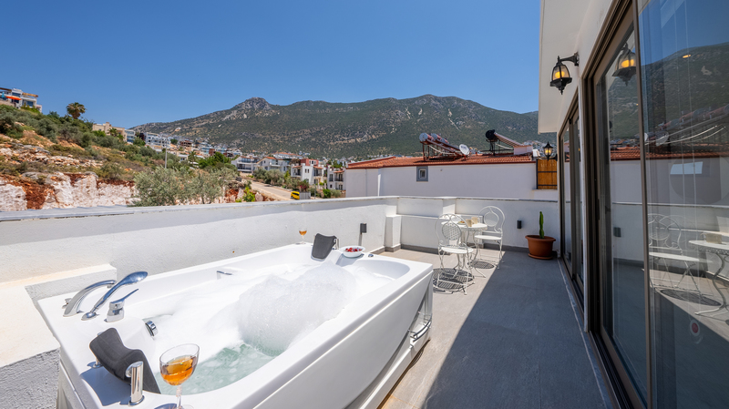 Set just above the Kalamar Road and tucked away in a quiet spot, this spacious property has been furnished in a contemporary style and the centre of Kalkan town is only a 10-12 minute walk away with a supermarket and cafes nearby.