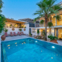 | Max no of Guests | No of Bedrooms | No of Double Beds | No of Single Beds | No of Bath/Shower Rooms | Walk to Town Centre | WiFi | Pool |