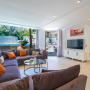 Next to the kitchen is a dining table that comfortably seats 6 people and sliding doors lead out to the pool terrace.